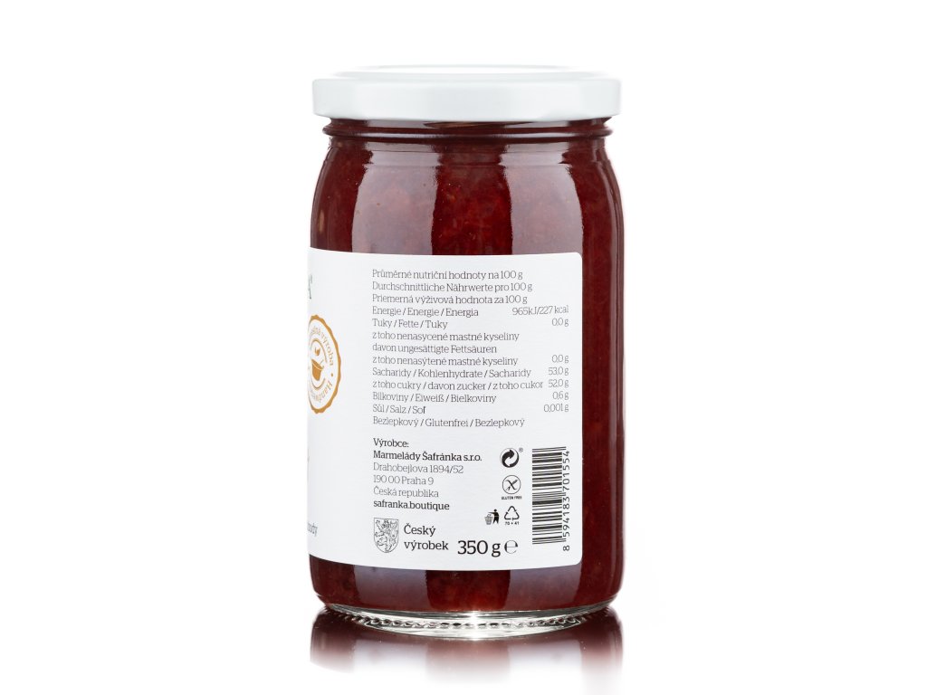 V každé skleničce najdete poctivých 53 g ovoce na 100 g džemu. Bez zbytečností. Jen ovoce, cukr a trocha citronu – nic víc, nic míň.