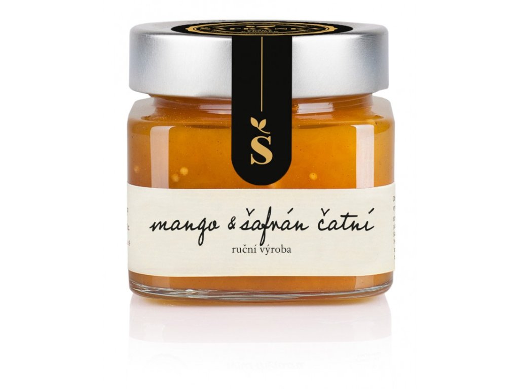 Mangové čatní (270g) v sobě skrývá 675g manga, šafrán, cibuli, česnek, koriandr, skořici, hořčičné semínko, cukr, jablečný ocet, zázvor, jalapenos a hrozinky.